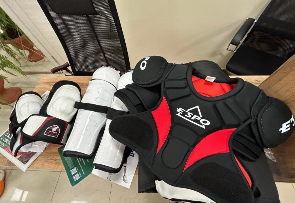 Комплект для адаптивного спорта включает шлем, клюшки, перчатки и многое другое. Вещи аккуратно упакованы в большую сумку. При этом сани и экипировка созданы индивидуально для каждого спортсмена.