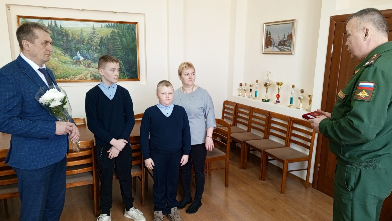 Супруге и детям военнослужащего её вручили глава районной администрации Сергей Сидоркин и военный комиссар Сергей Цапков.