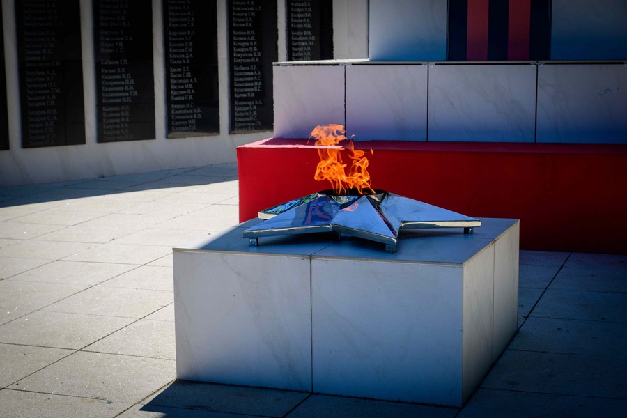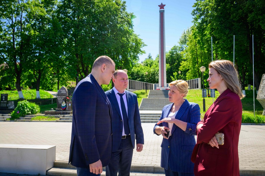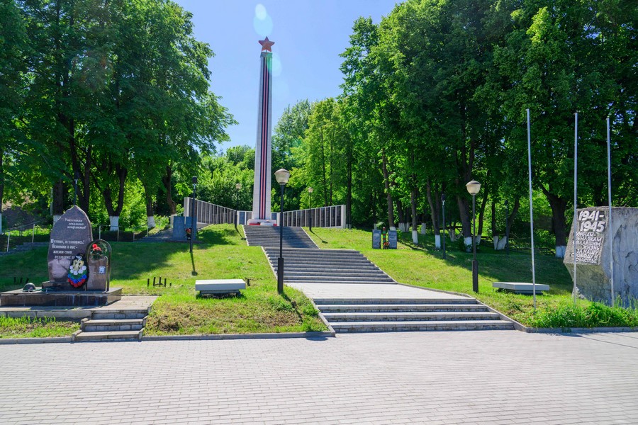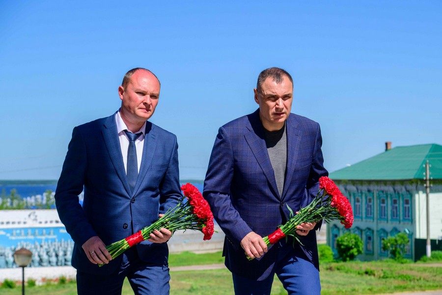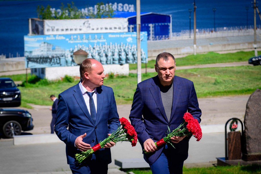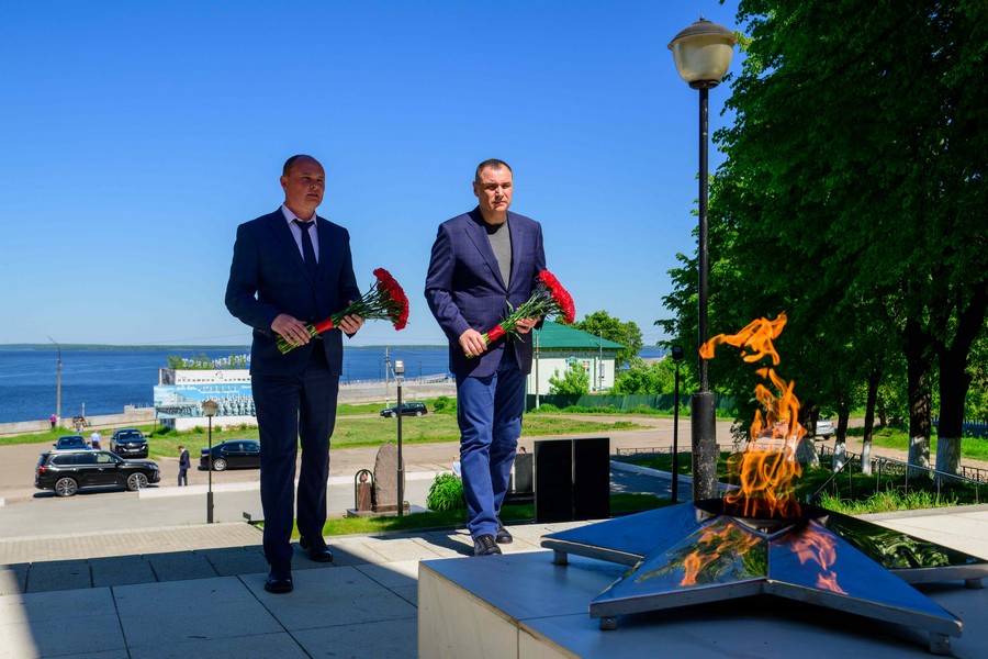 После этого вместе с мэром города Козьмодемьянска Михаилом Козловым глава региона возложил цветы к Обелиску Славы. Памятник капитально отремонтировали в 2023 году по программе поддержки местных инициатив. На эти цели было выделено около 3,8 млн рублей. Установлена металлическая конструкция стелы, опоры освещения с прожекторами, видеонаблюдение, мемориал с фамилиями погибших в годы Великой Отечественной войны, подведены сети газоснабжения для Вечного огня.