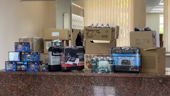 Посылка включает технические средства для нужд военнослужащих. Это газовые баллоны и горелки, походные печки, настольные газовые плиты.