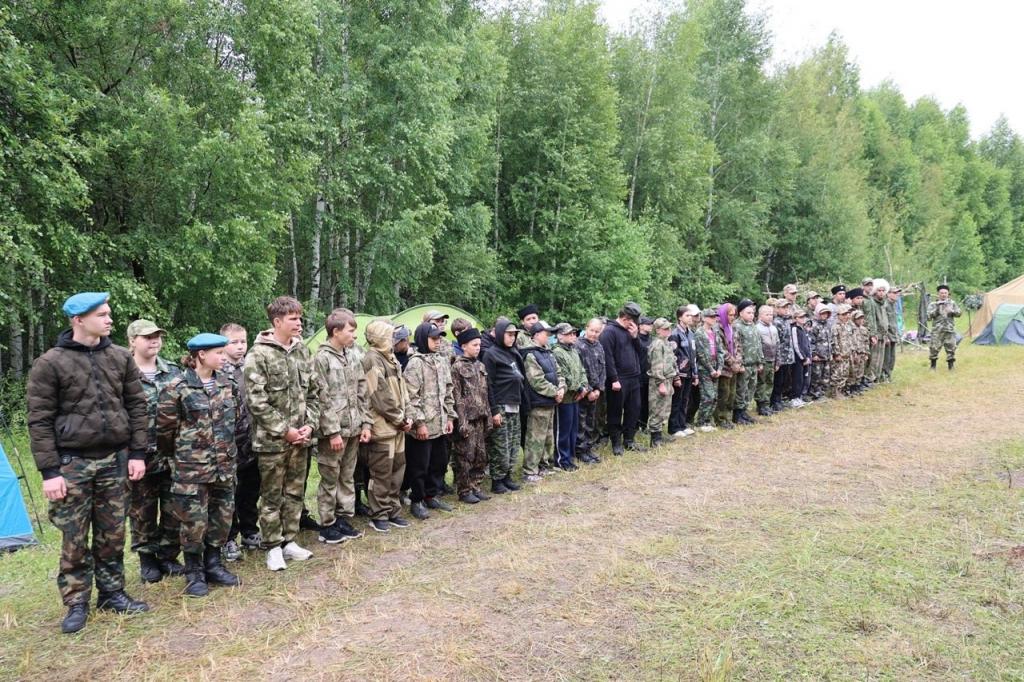 В походном лагере в лесу собрались 12 казачьих команд по шесть человек в возрасте от 10 до 16 лет из с. Эмеково, Казани, Зеленодольска, п. Васильево и др.