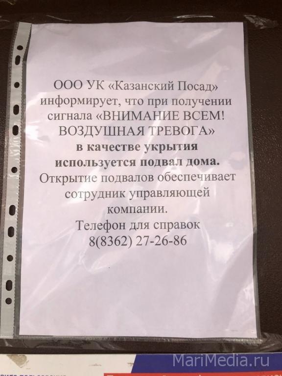 Наиболее пригодные подвалы в проверенных районах внесены в реестры в качестве мест убежищ. В населённых пунктах приступили к информированию населения о порядке укрытия, сообщили в Комитете гражданской обороны и защиты населения Марий Эл.