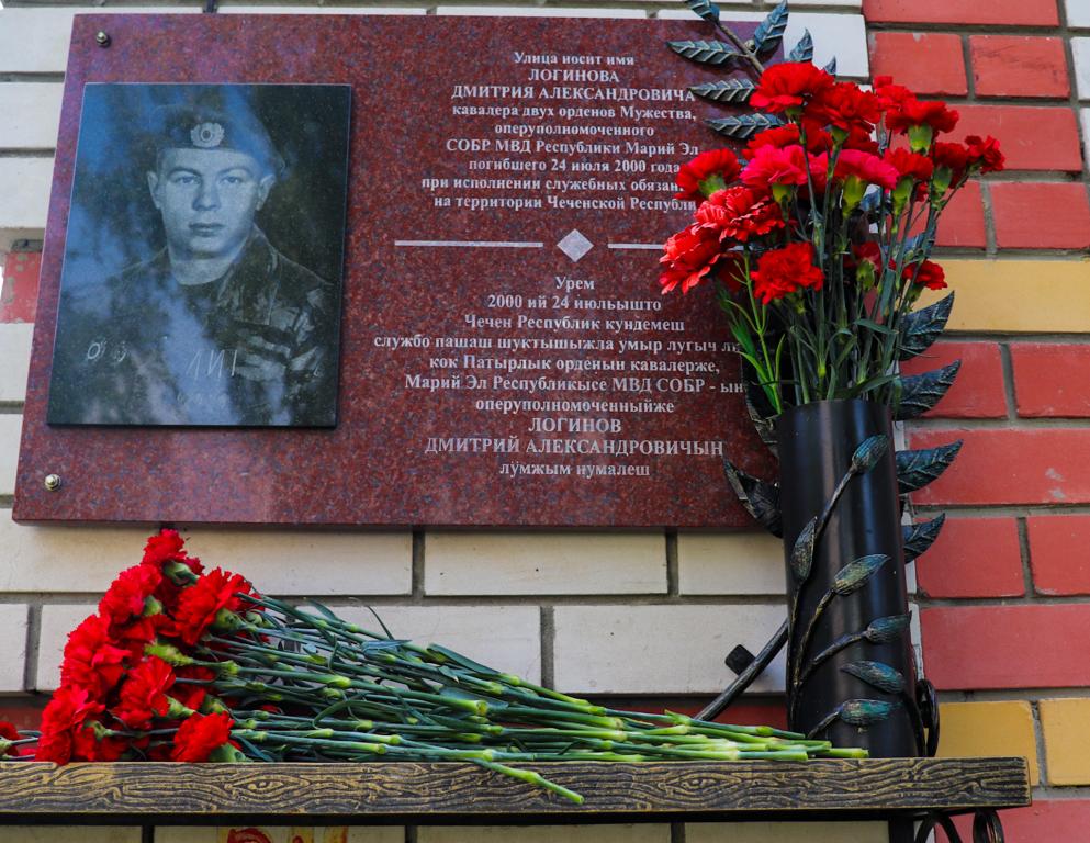24 июля 2000 года сводный отряд, в составе которого был Дмитрий Логинов вместе с сослуживцами из марийского СОБР, принимал участие в поисках бандитов в Урус-Мартане и подвергся нападению. При взрыве фугаса он получил тяжёлое ранение, но продолжал вести огонь, помогая товарищам покинуть горящую машину. За мужество и отвагу капитан милиции Логинов Дмитрий Александрович награждён орденом Мужества (посмертно). В память о подвиге героя его именем названа одна из улиц Йошкар-Олы, также его имя высечено на памятной доске Мемориального комплекса «Скорбящая мать».