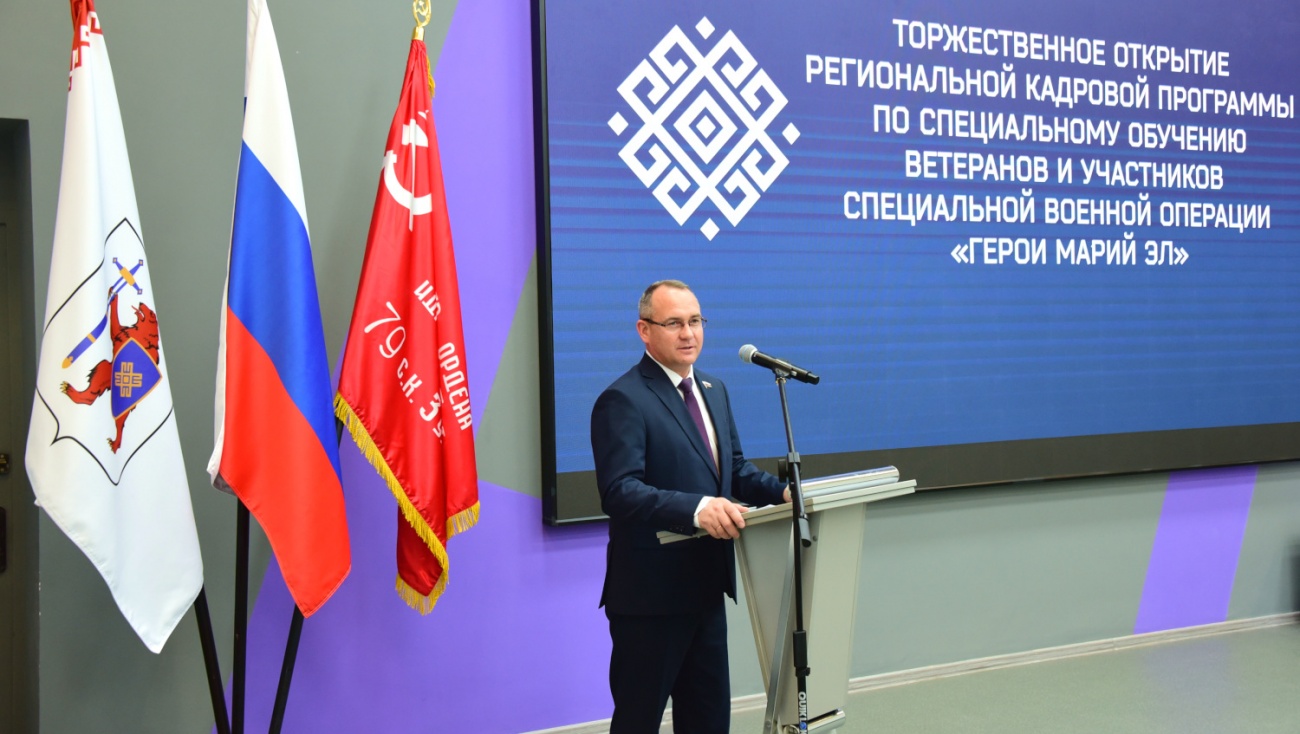 Глава республики Юрий Зайцев принял участие в торжественном открытии региональной кадровой программы по специальному обучению ветеранов и участников СВО «Герои Марий Эл. Талешке-влак».