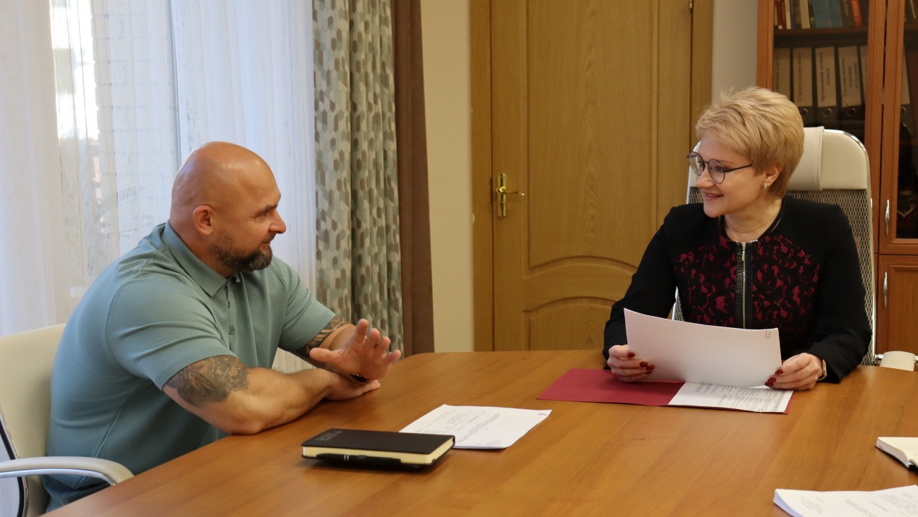 Лариса Ревуцкая знакомит участника программы «Герои Марий Эл» со сферой образования