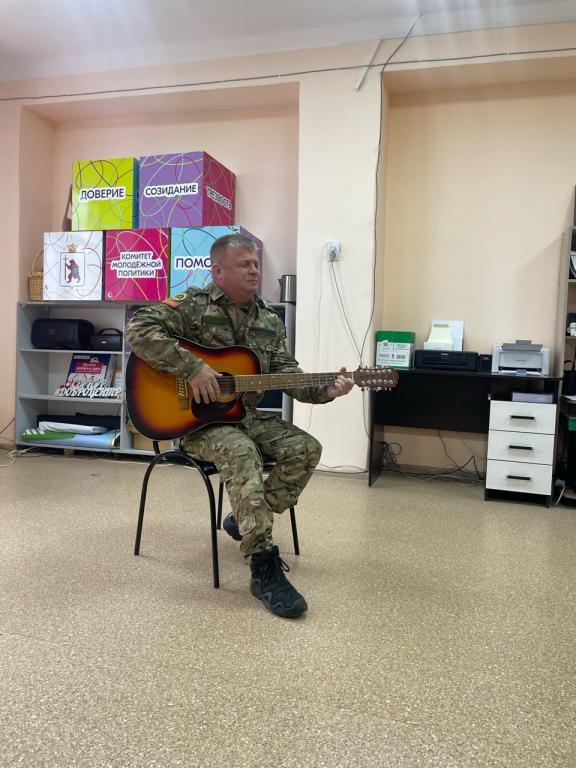 На встрече социальные координаторы Екатерина Шляхова и Надежда Антипина поблагодарили всех пап, воспитавших истинных патриотов, а ветеран СВО Игорь Иванов исполнил авторские песни.