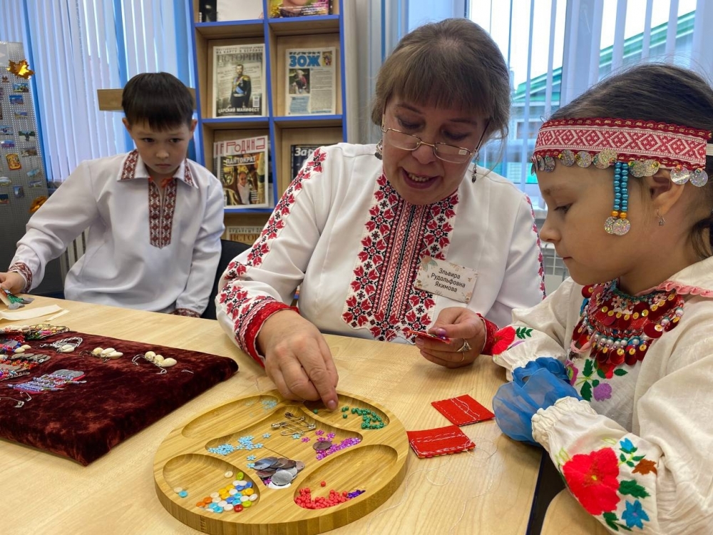 В посёлке Советский в центральной библиотеке имени Крупнякова семьи бойцов специальной военной операции трудились над созданием национальных оберегов.