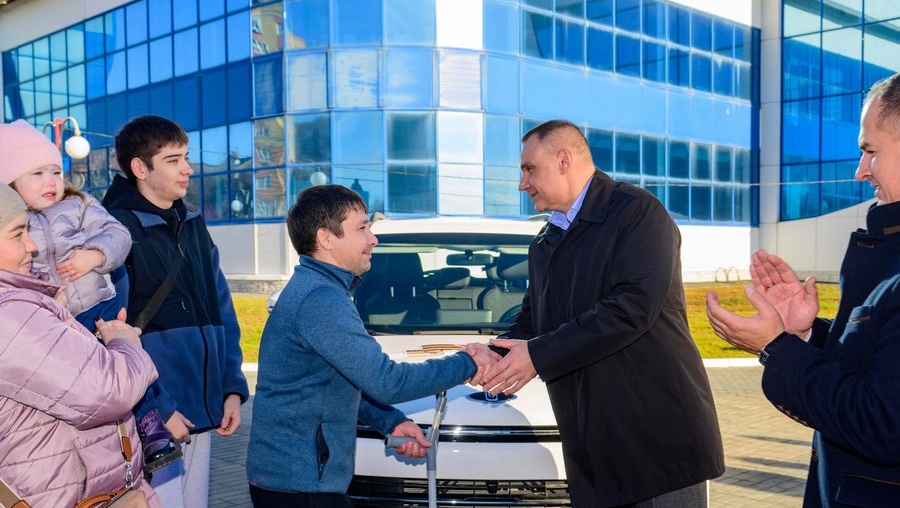 Глава Марий Эл от имени фонда «Защитники Отечества» вручил ветерану СВО, многодетному отцу Николаю Глухову автомобиль с ручным управлением.