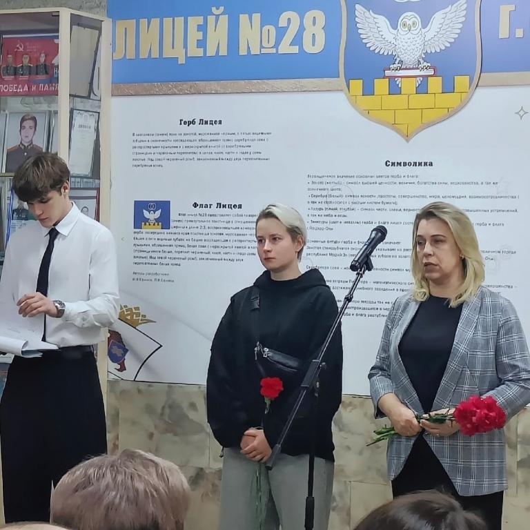 На мероприятии присутствовали заммэра города Людмила Новосёлова, и.о. начальника Управления образования Роза Чемекова, а также родители, близкие, педагоги и ученики лицея. Собравшиеся почтили память погибшего военнослужащего минутой молчания и возложили цветы к мемориальной доске.
