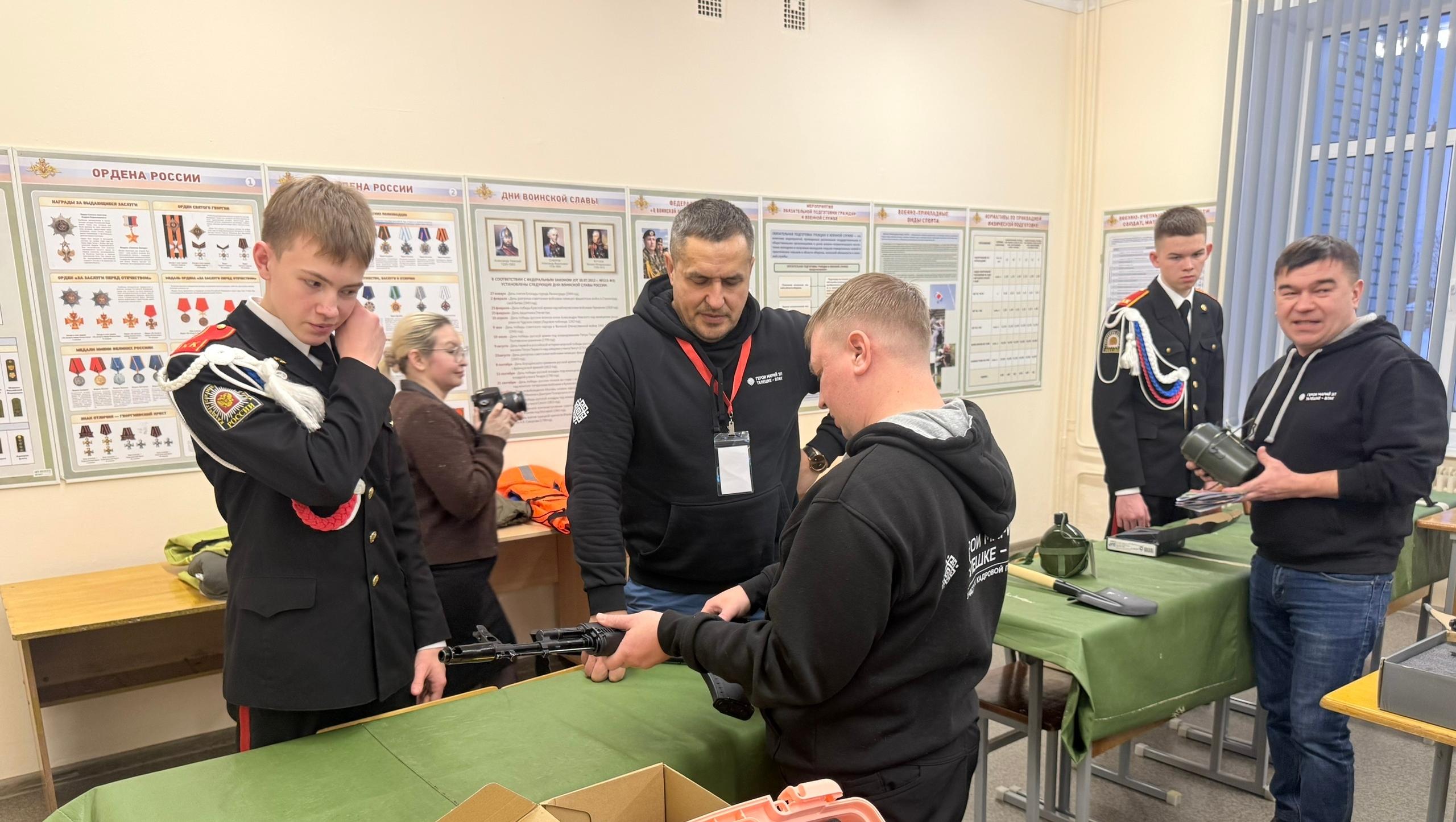 За 22 года работы образовательное учреждение стало настоящей кузницей кадров, выпустив 19 кадетских и 21 медицинский классы. Ветераны СВО осмотрели обновлённые кабинеты труда и ОБЗР, специализированные классы по БАС и робототехнике.
