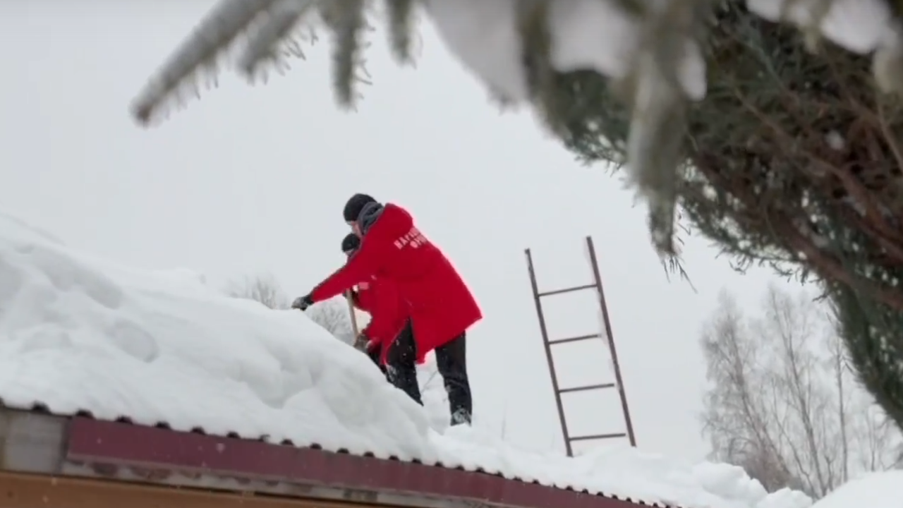 Снежный десант Народного фронта помог маме бойца СВО расчистить крышу дома