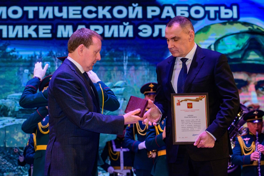На открытии месячника Главный федеральный инспектор по Марий Эл Сергей Беляков вручил Юрию Зайцеву памятную медаль «80 лет Победы в Великой Отечественной войне 1941–1945 годов».