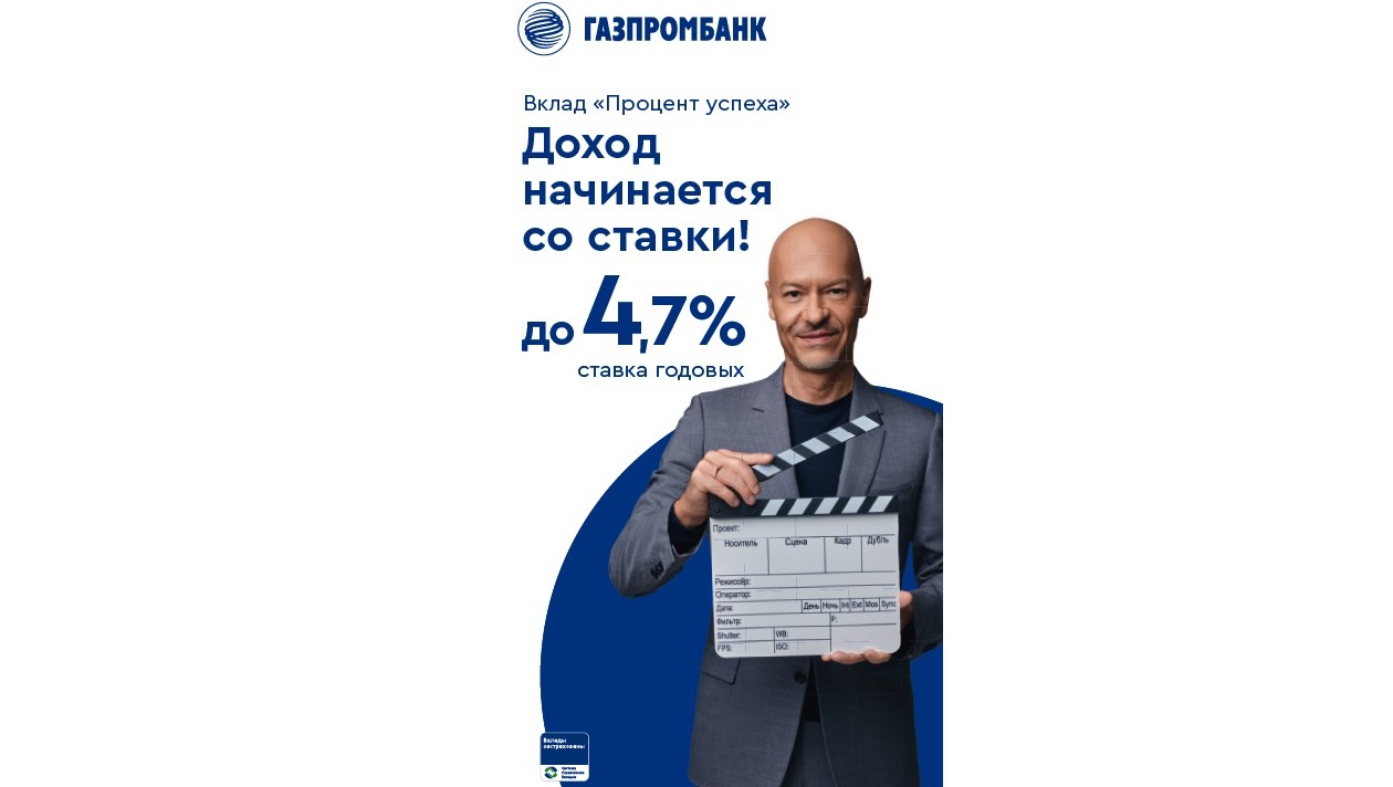* Вклад «Процент успеха». Ставка (% годовых) — 4,5% на 367 дней; 4,7% — на 548 дней. Валюта вклада — росс. рубли. Сумма вклада —от 30 тыс. до 10 млн руб. Дополнительные взносы, расходные операции, капитализация и пролонгация не предусмотрены. Предусмотрен один действующий договор вклада на клиента. Подробнее на gazprombank.ru и по тел. 8-800-300-60-90 (беспл. звонок на терр. РФ). Банк ГПБ (АО).