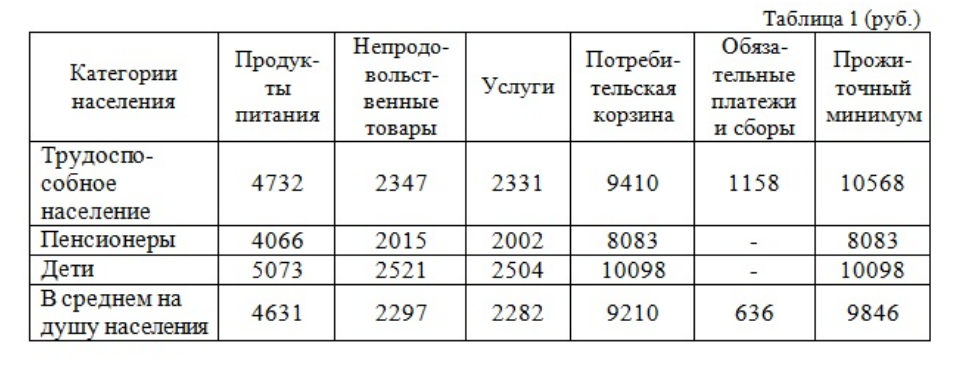 Стоимостная величина прожиточного минимума для основных социально-демографических групп населения сложилась следующим образом: