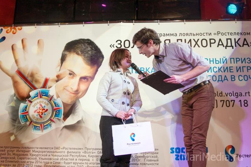 Имя участника, накопившего максимальное количество баллов в рейтинге филиала в Республике Марий Эл ОАО «Ростелеком» было озвучено в ходе церемонии награждения победителей первого этапа программы «Золотая лихорадка», которое состоялось 16 декабря 2012 г. в к/т «Россия». Победителю вручен сертификат на получение «Золотого приза» номиналом 30 000 рублей.