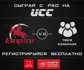Для желающих заявить о себе и сразиться со своими кумирами в шоу-матче, открыта бесплатная регистрация (http://resp.su/tournaments/view/764/players) на отборочный турнир, который пройдет 21 декабря (начало – в 12.00 по Мск). Две лучшие команды сразятся с Team Empire в январе 2015 года. Капитан Team Empire Айрат «Silent» Газиев отмечает: «К сожалению, из-за плотного тренировочного и турнирного графика, нам не часто выпадает подобная возможность. Поэтому предложение принять участие в проекте «Сыграй с Pro на UCC» мы приняли с большим удовольствием. Регистрируйтесь и побеждайте на отборочном турнире, а мы ждем вас на шоу-матче!».