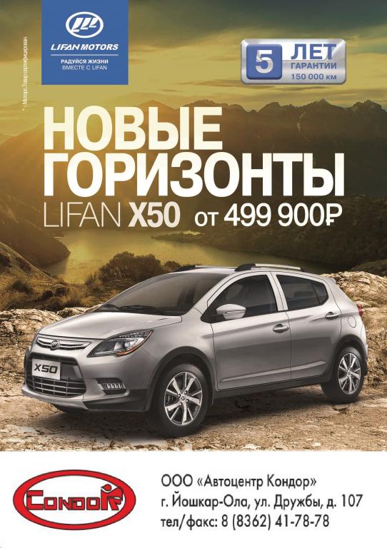 В честь презентации нового автомобиля ООО «Автоцентр Кондор» проводит конкурс* на розыгрыш главного приза в 5000 рублей. Сделайте селфи с автомобилем, разместите в Инстагармме с хештегом x5012rus или в Контакте в группе Кондор12рус. Все условия читайте в группе Кондор12рус, и приходите на тест-драйв по адресу ул. Дружбы 107.