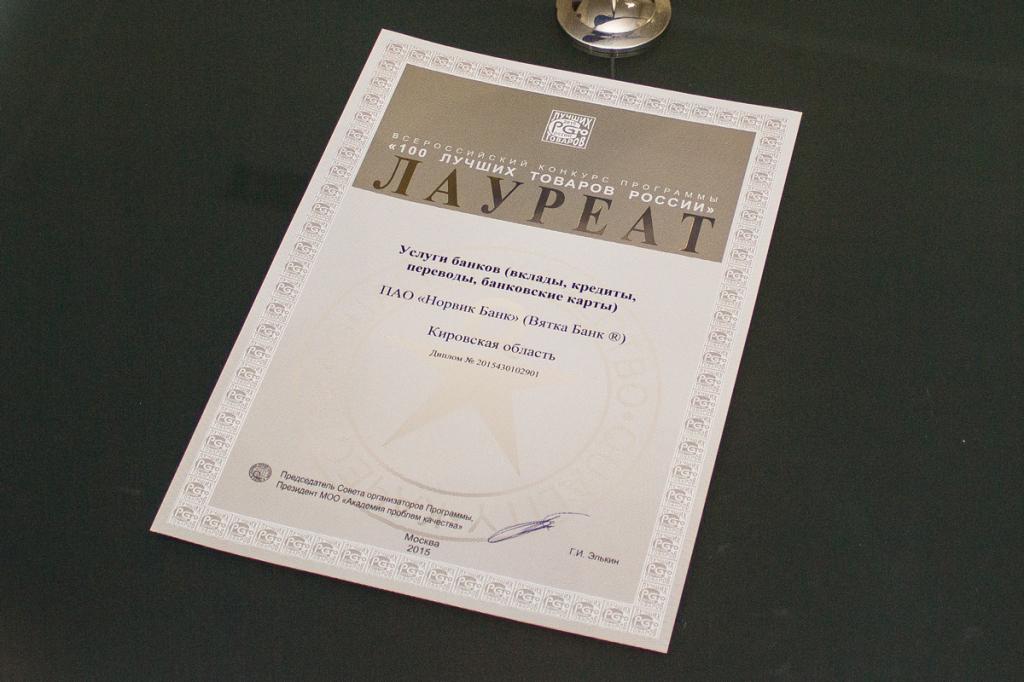 На областной конференции, посвященной Всемирному дню качества присутствовали руководители банка — президент Сергей Тувалкин и первый вице-президент Лилия Казаковцева. Им был вручен диплом лауреата Всероссийского конкурса «100 лучших товаров России», а также декларация качества. Кроме того, почетным знаком «Отличник качества» была награждена Елена Власова, управляющая дополнительным офисом банка «На Дружбе».