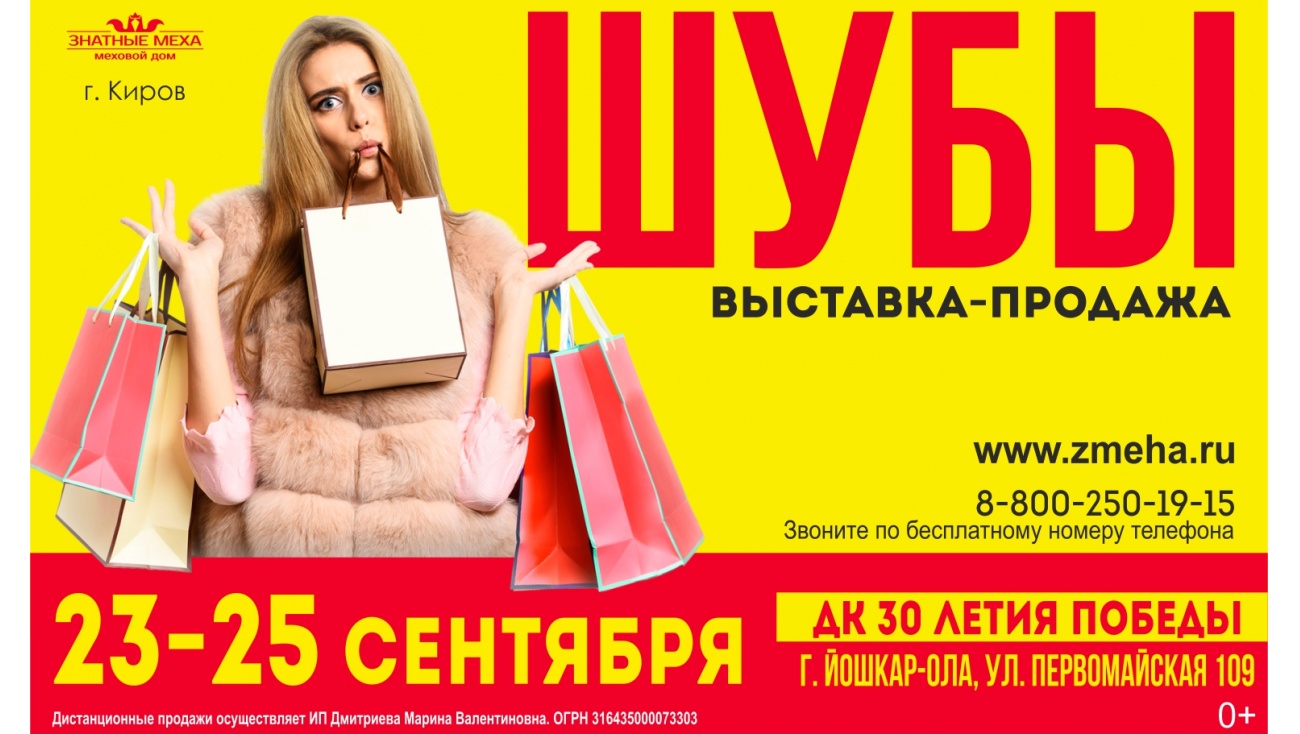 Кировская выставка-продажа «Знатные меха» объявляет об открытии серии распродаж в нашем городе. Шубы можно будет приобрести только с 23-го по 25-ое сентября в ДК ХХХ-летия Победы (ул. Первомайская, д. 109)
