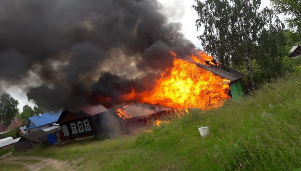 К прибытию пожарных подразделений дом был полностью охвачен огнём, отстоять его было невозможно. Пламя успело перекинуться на кровлю крыши соседнего дома.