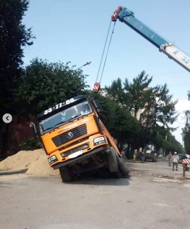 Доставать машину пришлось при помощи спецкрана. Хорошо еще, что конструкции неподвижной опоры в тепловой камере помешали машине повредить сами трубопроводы, иначе половина города осталась бы без горячей воды. ⠀