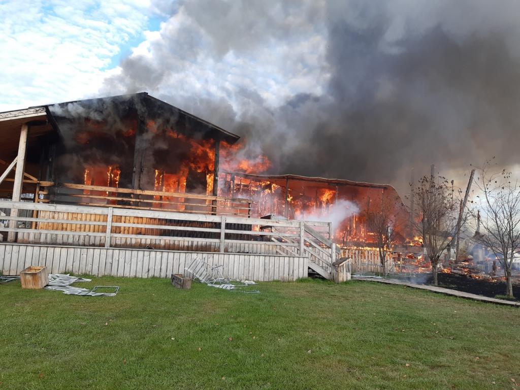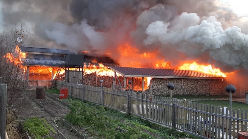 Незадолго до семи часов утра охранник почувствовал запах дыма. Мужчина обнаружил языки пламени в районе холодильной камеры, установленной в одной из надворных построек.