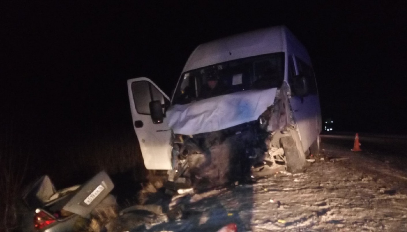 В ДТП погиб водитель иномарки. По предварительным данным, есть пострадавшие и в микроавтобусе.