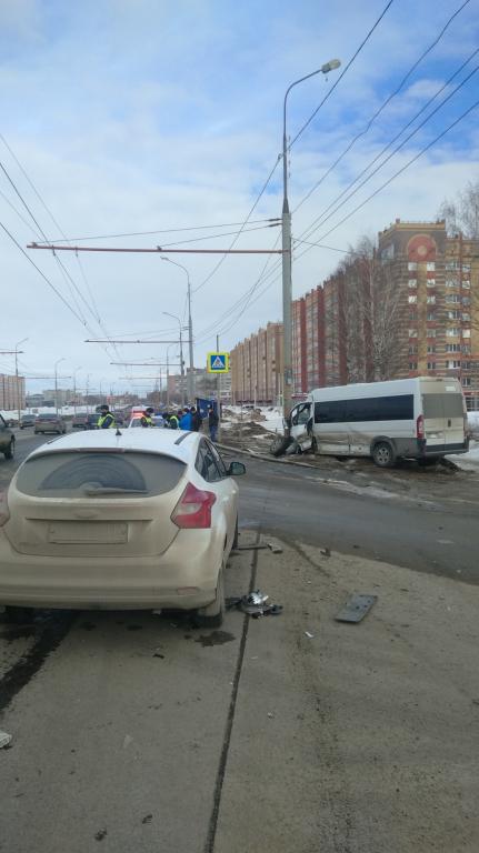 Сегодня днём, 26 марта, на улице Чернякова в Йошкар-Оле столкнулись пассажирский микроавтобус и иномарка.