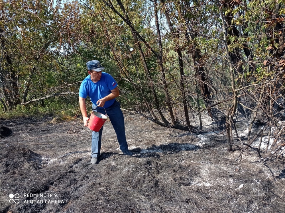 Огонь очень быстро распространялся по сухой траве. Специалисты инспекции маломерных судов тут же бросились на тушение. На помощь к ним присоединились и отдыхающие, в том числе и дети.