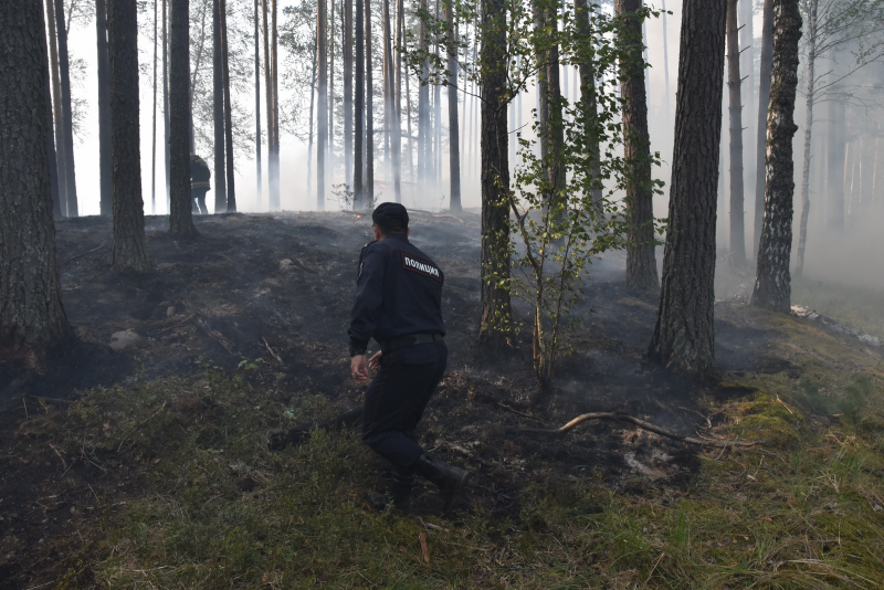 Сотрудники полиции в условиях лесного пожара в Медведевском районе несут сейчас службу в особо усиленном режиме.