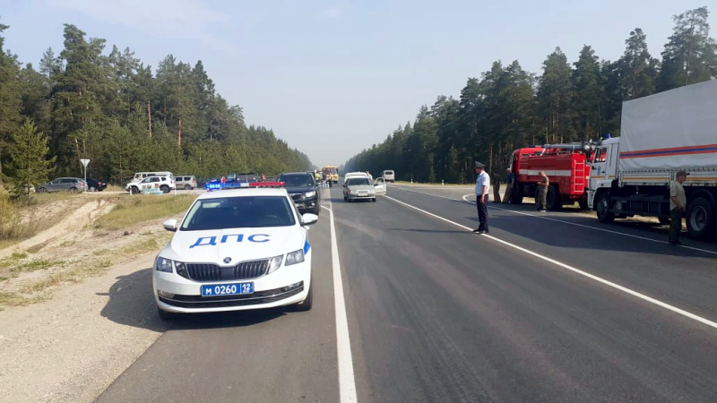 На региональных и федеральных автодорогах сотрудники Управления ГИБДД МВД по республике сопровождают специальные автобусы, организовывают объезд транспортного потока от места возгорания, обеспечивают беспрепятственный проезд спецтехники.