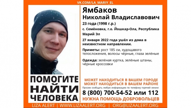 Молодому человеку 23 года. Особые приметы: рост 185 см, худощавого телосложения, волосы чёрные, глаза зелёные.
