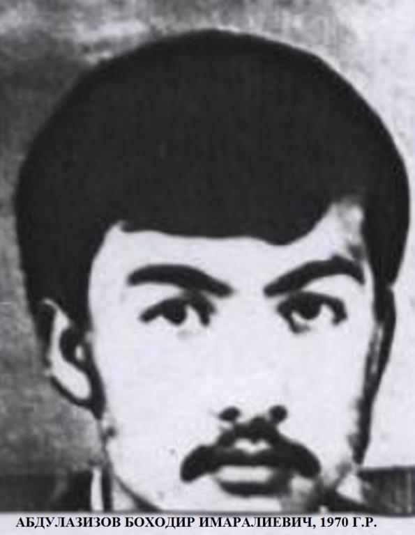 - Абдулазизов Бохадир Имаралиевич, 01.04.1970 г.р., уроженец Киргизской ССР, обвиняемый в совершении преступления, предусмотренного ст. 103 Уголовного кодекса РСФСР.
