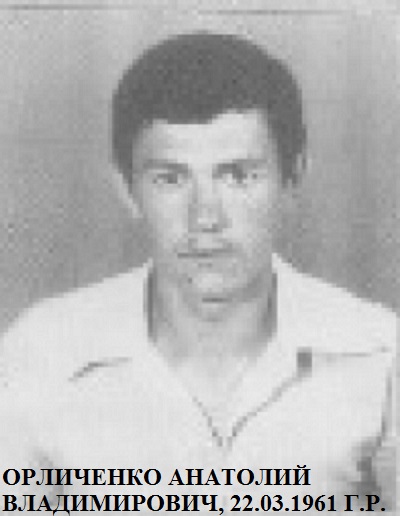 - Орличенко Анатолий Владимирович, 22.03.1961 года рождения, уроженец УССР, обвиняемый в совершении преступления, предусмотренного ст.103, ч.2 ст. 218 Уголовного кодекса РСФСР.