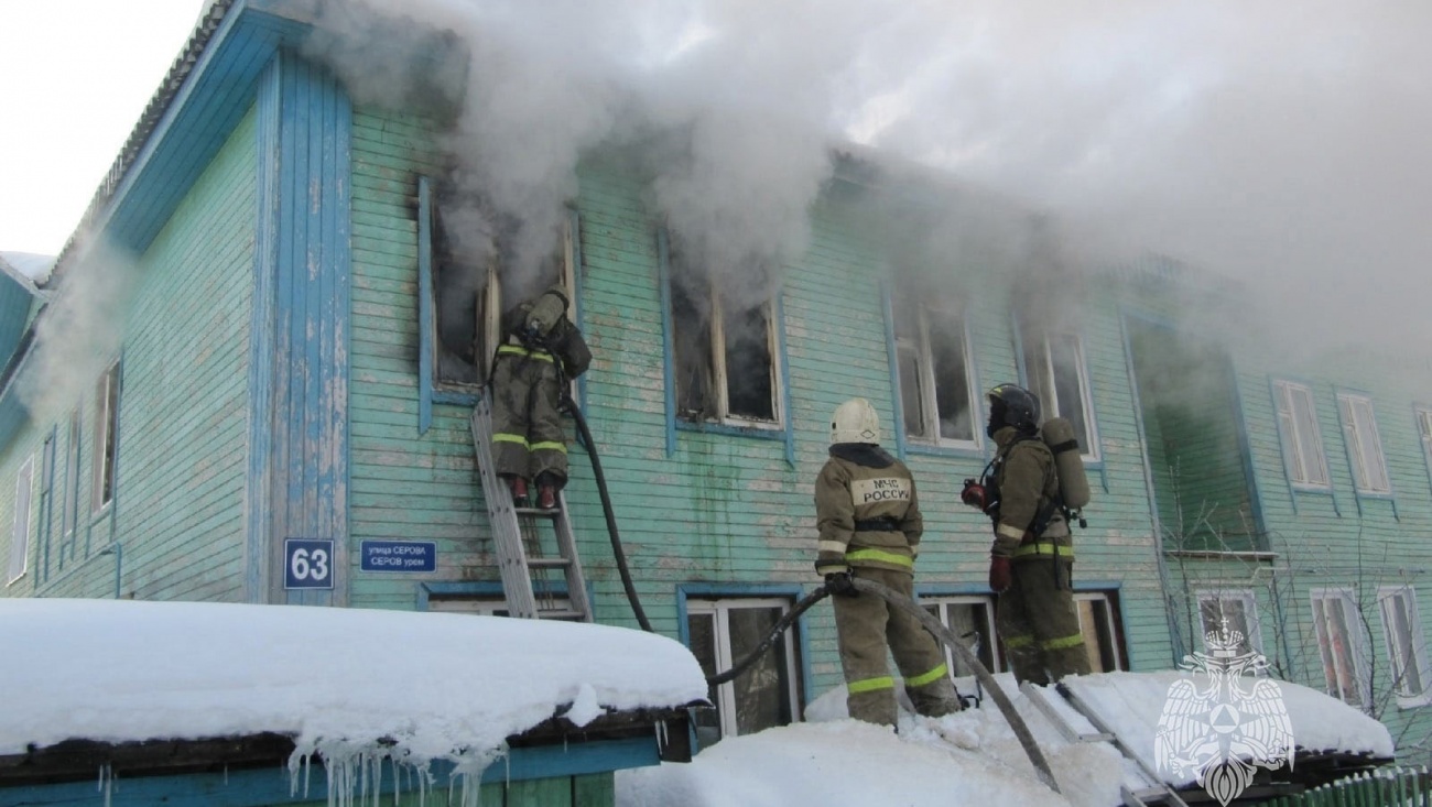 Сигнал о первом возгорании поступил около 11:00. Загорелся расселённый деревянный дом по улице Эшпая.