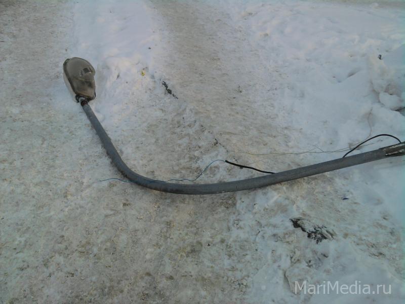Сегодня в 9.15 на пересечении улиц Панфилова и Советской под ноги пожилой женщине упала фонарная дуга и светильник. По чистой случайности обломки конструкции её не задели. По словам очевидцев, женщина убежала с места происшествия. ИА Marimedia созвонилось со специалистами «Горэлектросервис». По словам электриков, столбы монтируются таким образом, что упасть они практически не могут, даже если в линию опоры электропередачи врезается машина, столб от удара может лишь накрениться. В прошлом году в Сомбатхее, когда рыли траншею по ул.Воинов-Интернационалистов, повредили асфальтобетонное основание, и тогда столб лишь наклонился под углом 30 градусов.