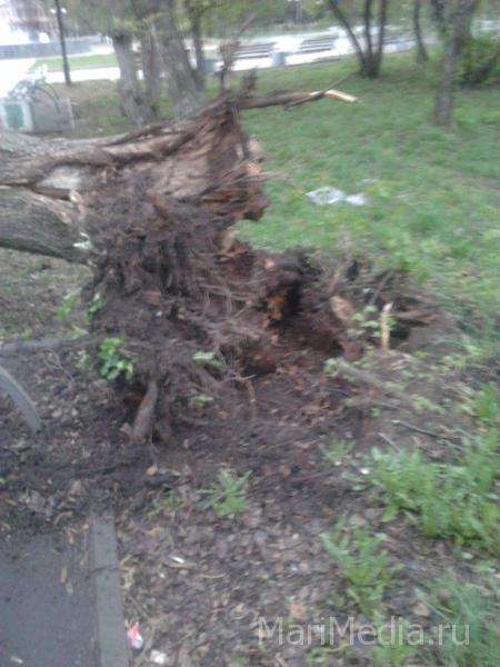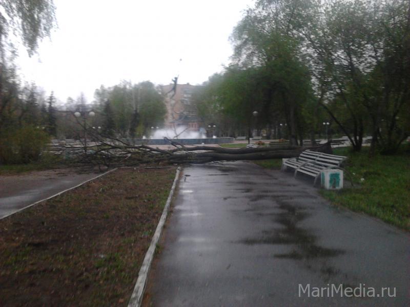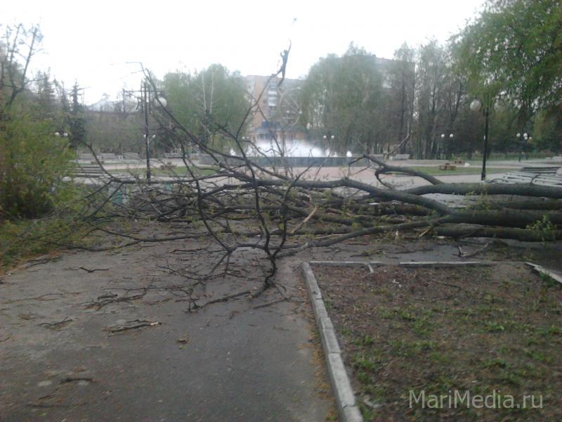 Порывы ветра достигают 20 м/с. Ветер не только ломает ветви деревьев, но вырывает слабые с корнем. По словам очевидцев, около 18 часов в сквере им.Гагарина огромное дерево рухнуло на пешеходную аллею.