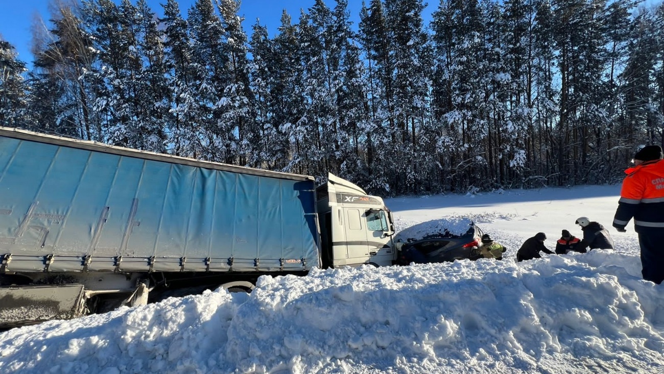 По предварительным данным, грузовой автомобиль выехал на встречную полосу движения, где врезался в Hyundai Solaris.