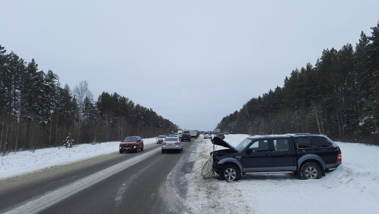 Сегодня утром на 88 км автодороги «Йошкар-Ола — Зеленодольск» столкнулись два легковых автомобиля.