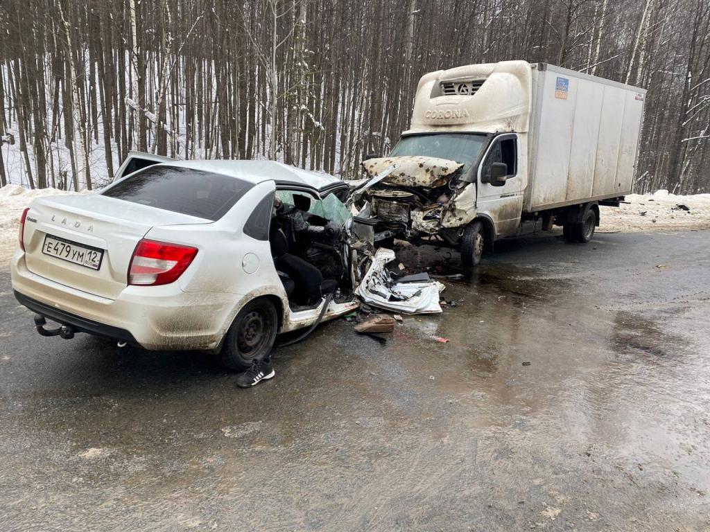 На 4 км автодороги «Кокшайск — Красногорский» произошло столкновение Газель и Lada Granta.