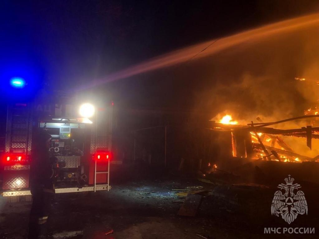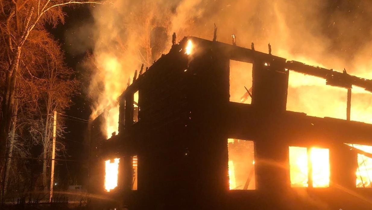 На тушении привлекались 21 человек и пять единиц техники. Двухэтажная постройка была полностью в огне. Площадь возгорания составила около 300 квадратных метров.