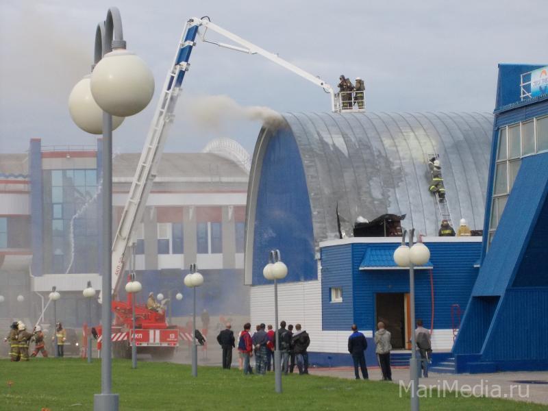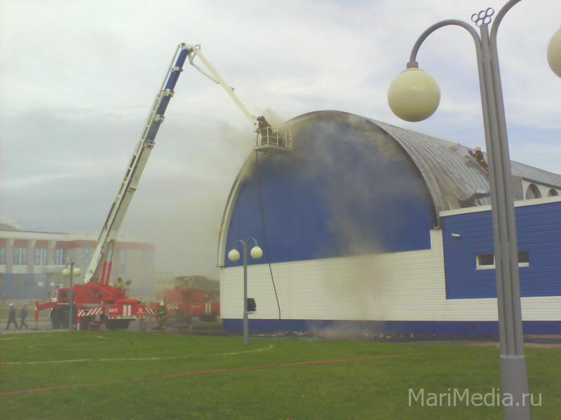 Как сообщают очевидцы, из под крыши вырываются клубы дыма, а воду для тушения с помощью гидрантов подают прямо из Дворца водных видов спорта.