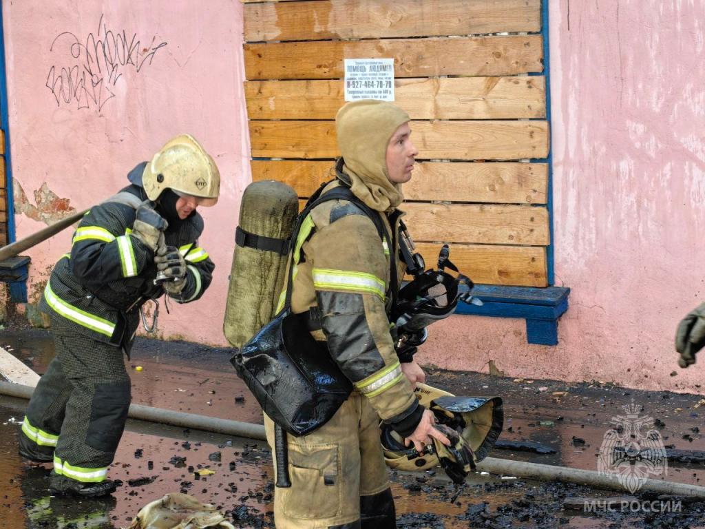 В Йошкар-Оле горит двухэтажный деревянный барак.