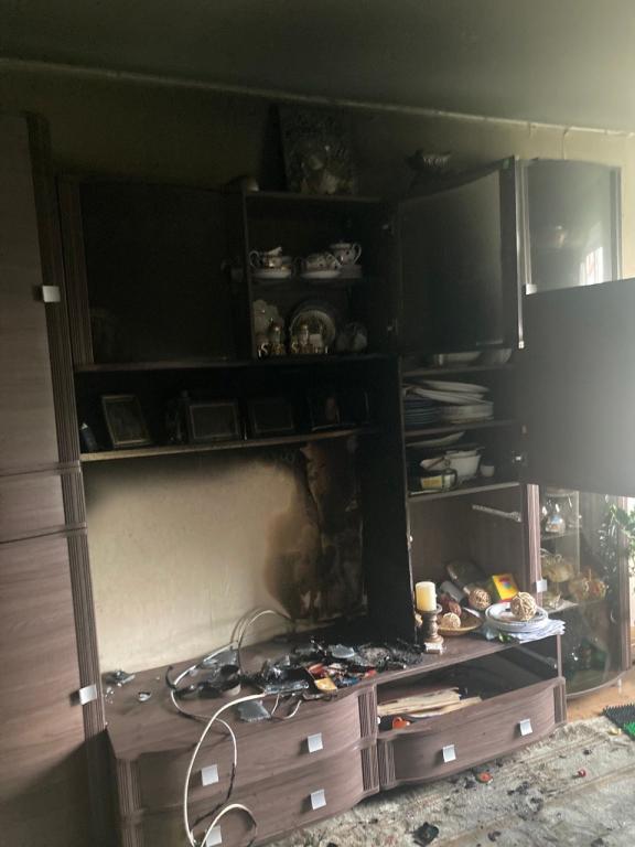 Прибывшие на место огнеборцы обнаружили, что в одной из комнат квартиры горят телевизор и мебельная стенка. Пожар был оперативно потушен, огню не дали распространиться по квартире.