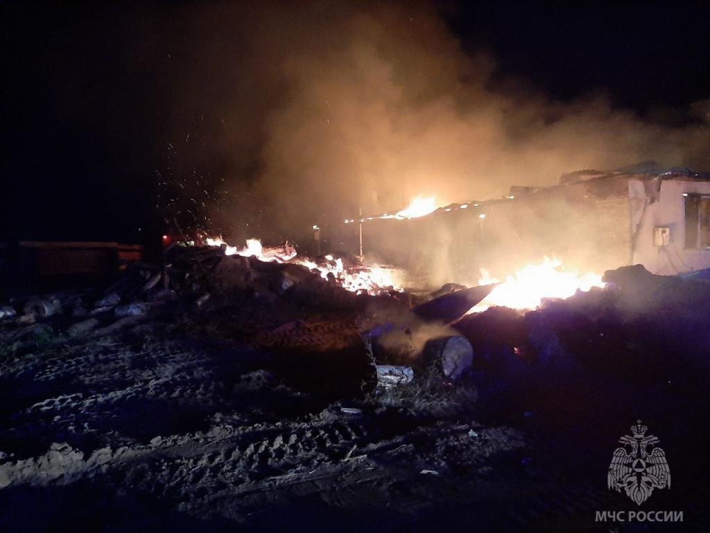 Загорелось производственное здание для содержания и ремонта техники. На момент случившегося внутри находился друг собственника. Он проснулся от треска огня, который охватил пристрой к гаражу. Пламя стремительно перекидывалось на постройку. Мужчина вызвал пожарных, а сам быстро отогнал в безопасное место «ГАЗель» и трактор.