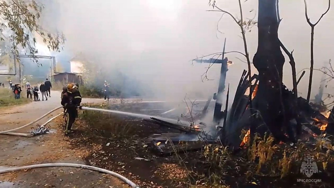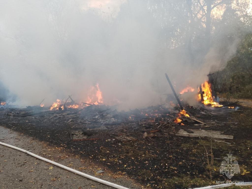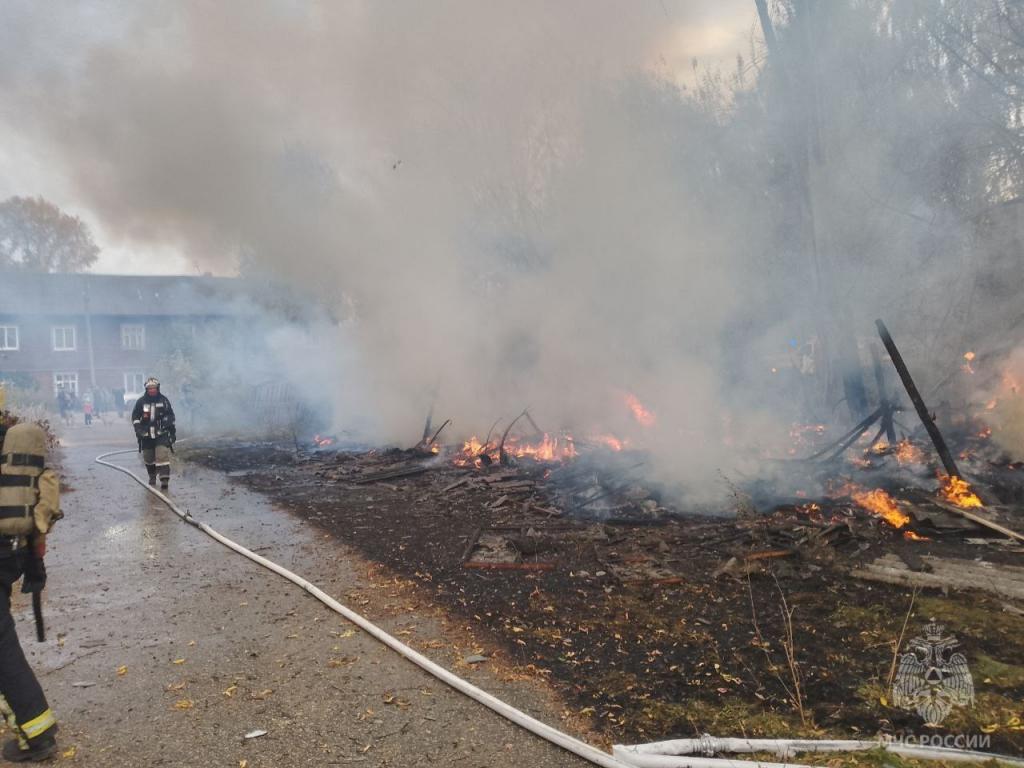 К прибытию пожарных площадь возгорания составляла около 100 квадратных метров. Огнём были охвачены неэксплуатируемые сараи.
