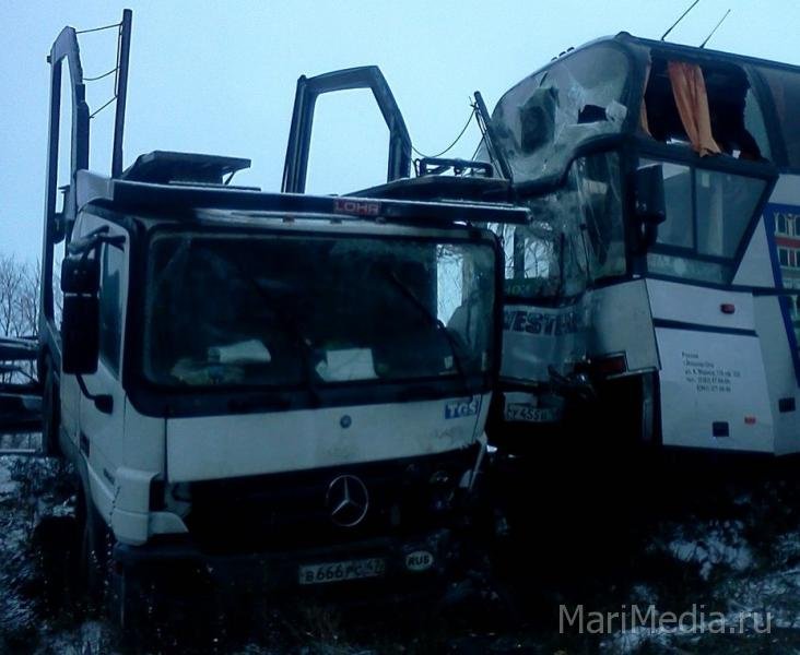 ДТП произошло сегодня утром на 596 км трассы М-7 в Ядринском районе Республики Чувашия. Как сообщает пресс-центр МВД России, возле деревни Малая Тюрлема столкнулись пассажирский автобус «Неоплан» и грузовой автомобиль «Мерседес». Рейсовый автобус следовал из Москвы в Йошкар-Олу. В результате ДТП пострадал водитель автобуса.
