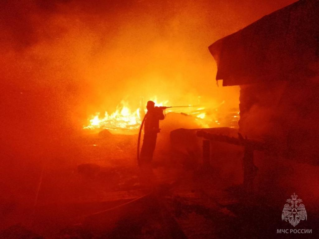 Крупный пожар произошёл в субботу в частном подворье в деревне Инерымбал Волжского района.