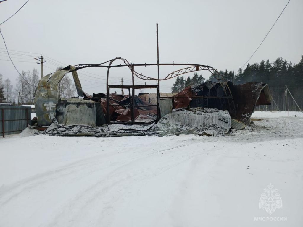 В результате происшествия техника полностью уничтожена, строение сгорело. По предварительной версии причиной возгорания стало короткое замыкание электропроводки.