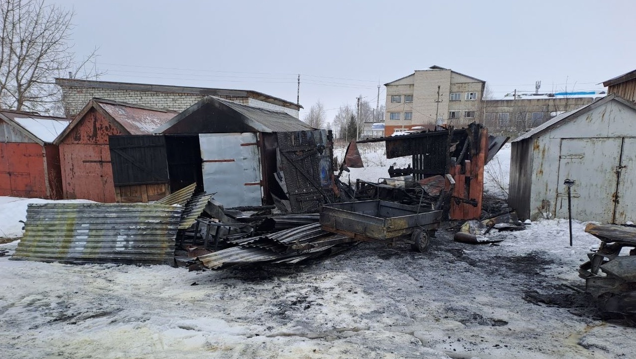 В посёлке Мари-Турек этой ночью сгорели два автомобиля и два гаража. Пожар произошёл около 3:00.